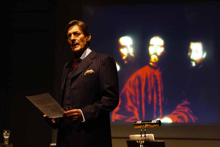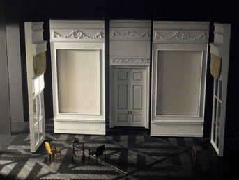 Janet Bird's sets brilliantly evoke the squalor and restriction of Burgess's life in Moscow, the tiny centre stage flat with enclosing walls surrounded by depressing semi darkness while mysterious figures lurk in the shadows, constantly watching.. In the second play the stylish Courtauld Institute switches easily to the Queen's Gallery with a profusion of paintings on the walls
